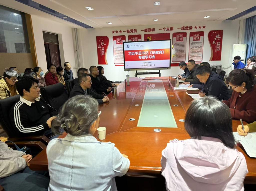 11月11日,电气工程学院在党员活动室召开了习近平总书记《论教育》专题学习会。会议由党总支书记刘其兵主持,全体教职工参加了此次学习会。