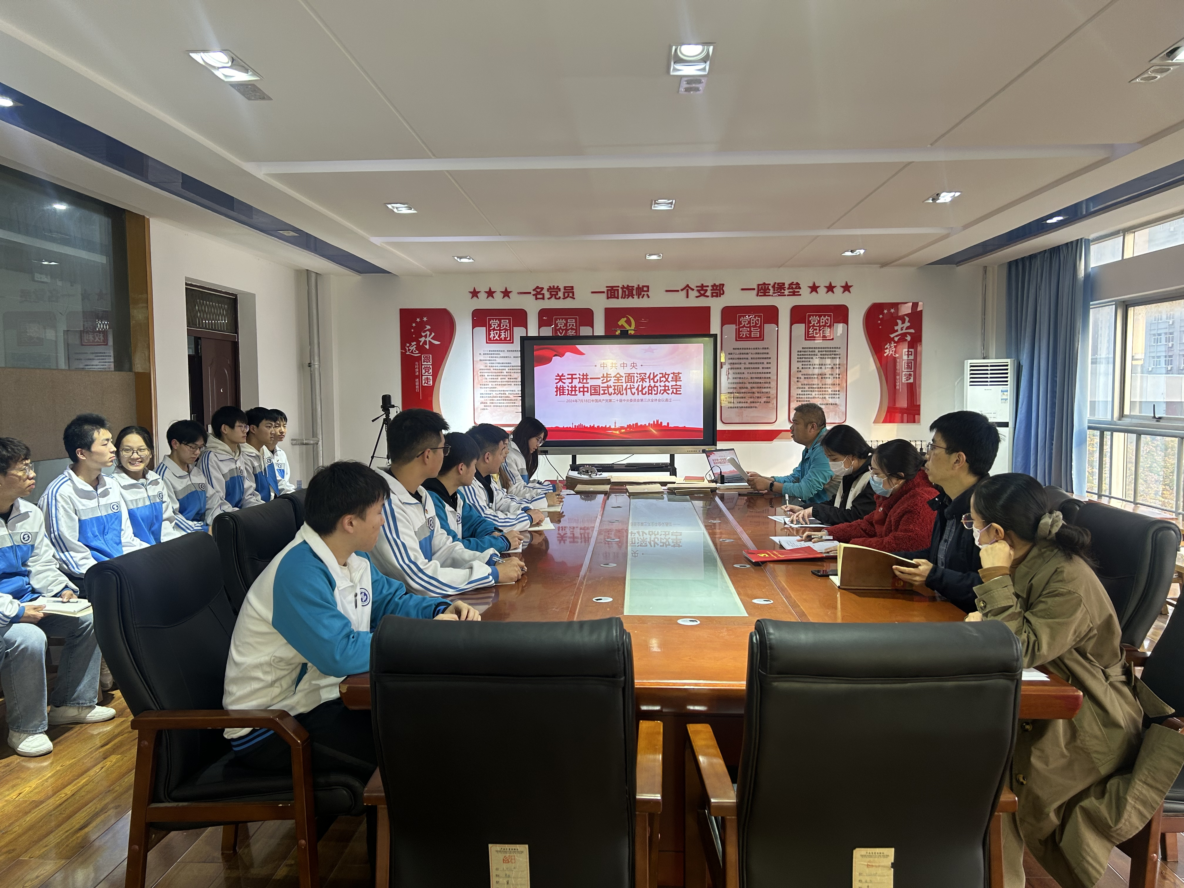 最后,支部书记夏远贵同志作总结发言,他强调学习贯彻党的二十届三中全会精神是当前和今后一个时期的重要政治任务,全体学生党员要以此为契机,进一步加强学习,提升能力,同时也要保持清醒的头脑和立场,不断锤炼党性修养和道德品质,成为一名合格党员。