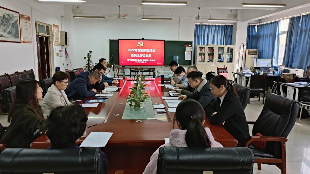 根据学校《关于召开2022年度组织生活会和开展民主评议党员工作的通知》要求,3月1日下午,电气工程学院党总支教师第二党支部在行知楼A502召开2022年度组织生活会暨民主评议党员会议,会议由第二党支部书记张维主持,教师第二党支部党员同志参会,电气学院党总支书记韩伟对会议进行督导。