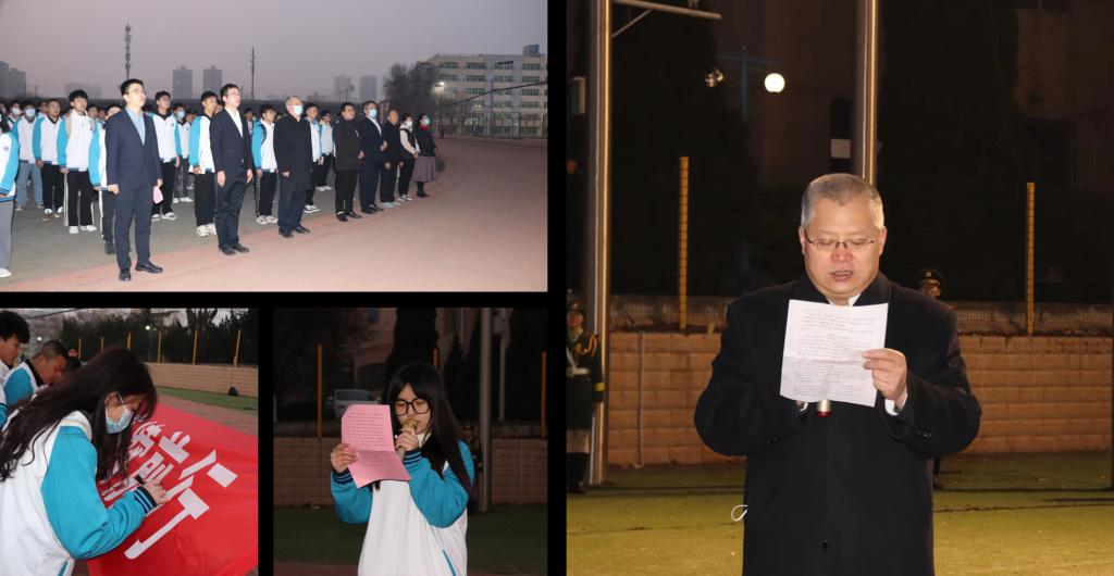 升旗仪式结束后,师生们在“青春梦想需踔厉奋发,时代使命当赓续前行”的横幅上签字,表达了新学期砥砺笃行,向着更高目标进发的信心和决心。