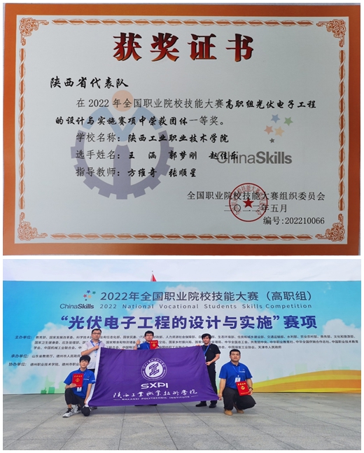 8月21日-24日,2022年全国职业院校技能大赛“光伏电子工程的设计与实施”赛项在德州职业技术学院举行。由我校电气工程学院教师方维奇、张顺星指导,自动化1909班王涵、郭梦刚、赵佳乐三位同学组成的代表队荣获团体一等奖,方维奇、张顺星老师获优秀指导教师奖。