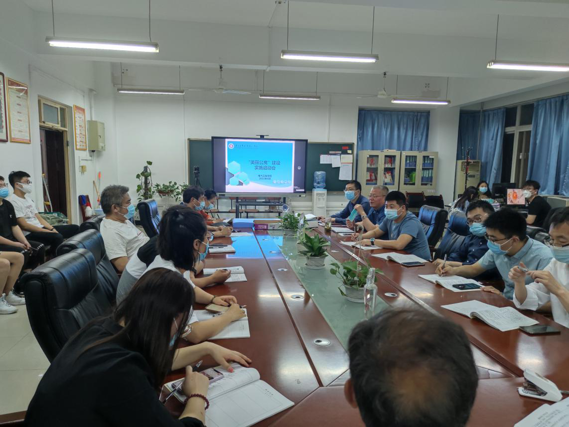会上,学工办主任赵松向师生们传达了建设美丽公寓的必要性和紧迫性,分析了目前美丽公寓建设存在的问题,要求各班级从违章电器查处、寝室卫生管理、学生宿舍抽烟、宿舍突发事件处理等方面入手强化宿舍日常管理,并提出具体整治措施。电气学院党总支书记韩伟针对“美丽公寓”实施提出具体要求:要求全体辅导员、班主任高度重视学生文明宿舍建设,强化班级宿舍全方位监管;要求全体学生干部、预备党员、积极分子发挥模范带头作用,做好宿舍卫生整理整洁工作,多措并举加强对学生宿舍卫生管理。