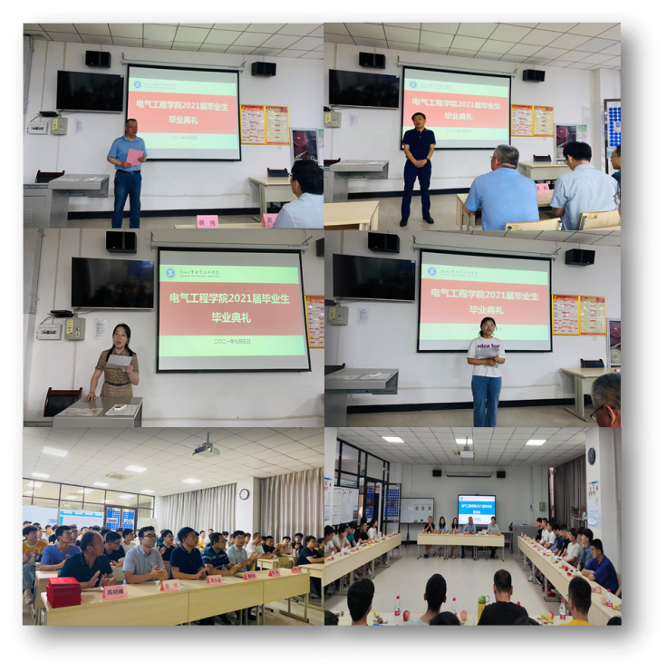 7月5日上午,电气工程学院“2021届学生毕业典礼暨毕业生座谈会”在行知楼A欧姆龙教室举行。电气工程学院党总支书记韩伟、院长夏东盛以及毕业班辅导员代表、班主任代表等出席典礼,毕业典礼由党总支书记韩伟主持。