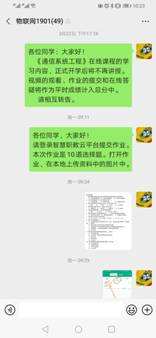 根据课程进度及内容安排,每完成两周直播课程教学布置1次作业,作业发布在智慧树平台和班级QQ群,学生按照授课教师要求按时完成作业,老师按时对作业进行批阅并通过班级QQ群反馈作业问题。个别同学因为网络或平台时限等原因未能及时完成作业的,授课教师通过班级QQ群等及时督促提醒,促使学生保质保量完成作业。