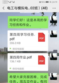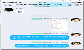 按照教师布置的学习任务的安排,学生在上课前在智慧树平台观看共享课程《电工线路规划与实施》教学视频做好课前预习工作;在课表上课时间段在班级QQ群(分享屏幕)上直播课,并参与互动,每次上课前五分钟在知道app签到考勤;认真学习,积极参与教学环节,按时完成教师布置的学习任务。