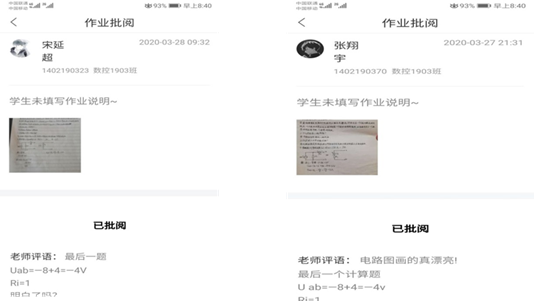 学生将作业拍成图片交给教师,教师批阅,教师就作业中的问题给学生集中予以反馈。