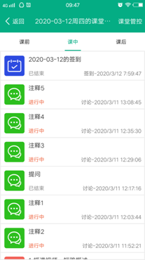 学生基本能够按时签到,少部分同学因为网络及个人原因延迟签到或未签到,经过老师督促,说明迟到原因及未签到原因,同时利用QQ授课群及时提醒学生按时考勤。
