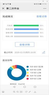 根据学生实际学习情况及掌握情况,3周时间布置了3次作业,其中,2次已经评阅,第三次作业截止时间还未到。老师均能按时对作业进行批阅并通过平台反馈作业问题。从总体来看,大多数学生利用视频学习完成后独立思考,并且对所学的知识点进行评价,作业能够自己完成,部分学生直接从网上下载答案,应进行批评教育。