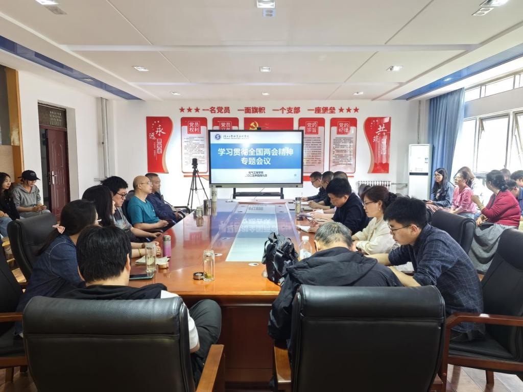 为深入学习传达全国两会精神,4月9日,电气工程学院在行知A506召开学习贯彻全国两会精神专题会议,学院全体教职工参会,会议由学院党总支书记刘其兵主持。
