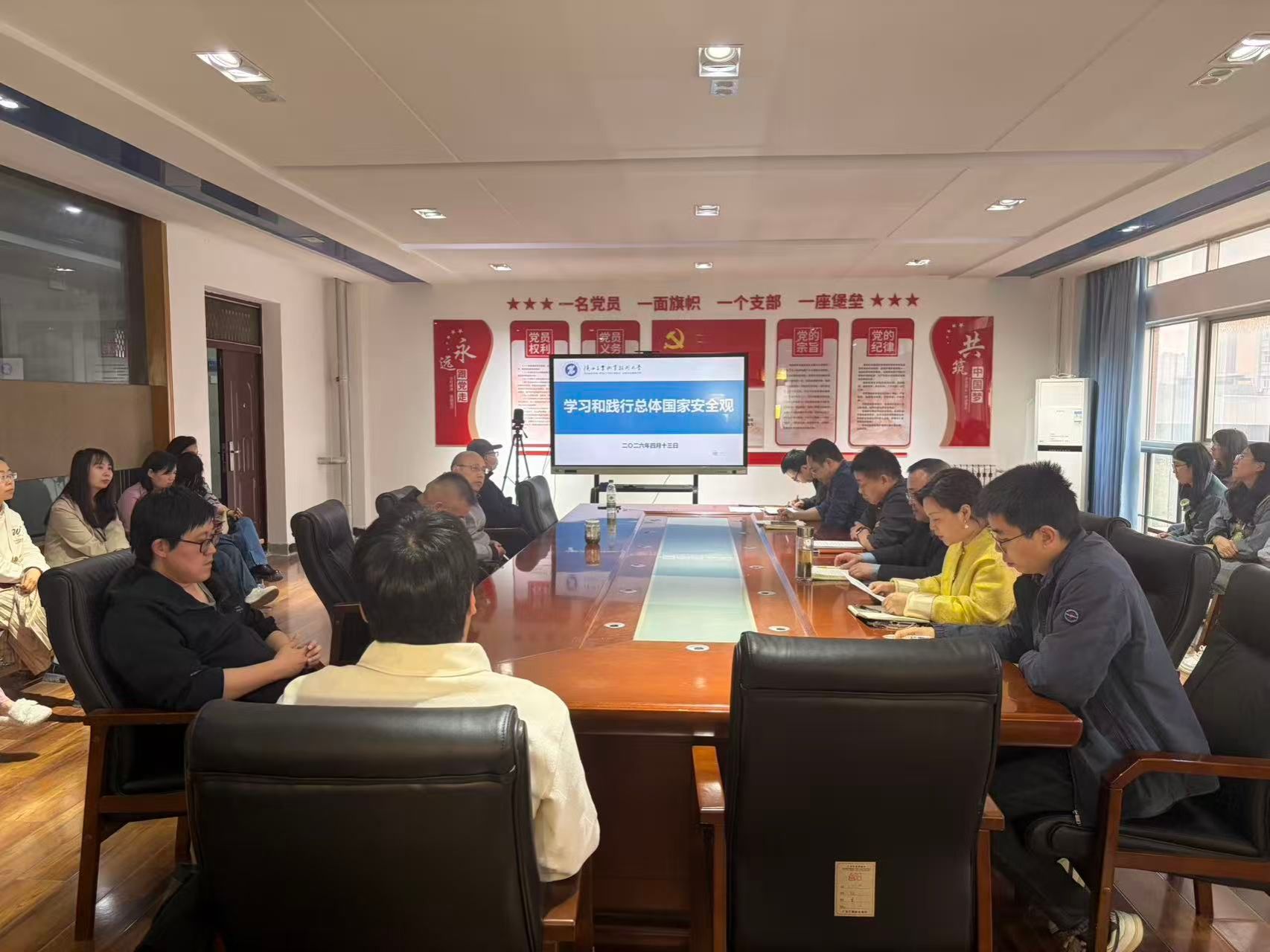 为牢固树立和全面贯彻总体国家安全观,提升师生维护国家安全的思想自觉和行动自觉,4月13日下午,电气工程学院在行知楼A506会议室召开学习和践行总体国家安全观专题会议。学院全体教师参加会议,会议由党总支书记刘其兵主持。
