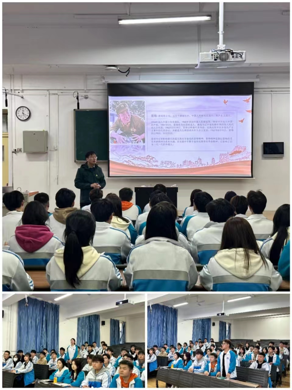 支部书记赵松向党员学生传达了习近平总书记关于弘扬雷锋精神重要论述,为新时代新青年弘扬雷锋精神提供根本遵循。接下来,他从“什么是雷锋、雷锋精神的内容、雷锋日记摘选、雷锋精神的内涵、如何传承弘扬雷锋精神”等五个方面,结合学生日常生活、学习实际进行了详细讲解。同时,呼吁同学们要在日常生活、学习过程中大力弘扬新时代雷锋精神,积极践行社会主义核心价值观,切实把学雷锋志愿服务融入到铸牢中华民族共同体意识生动实践中。