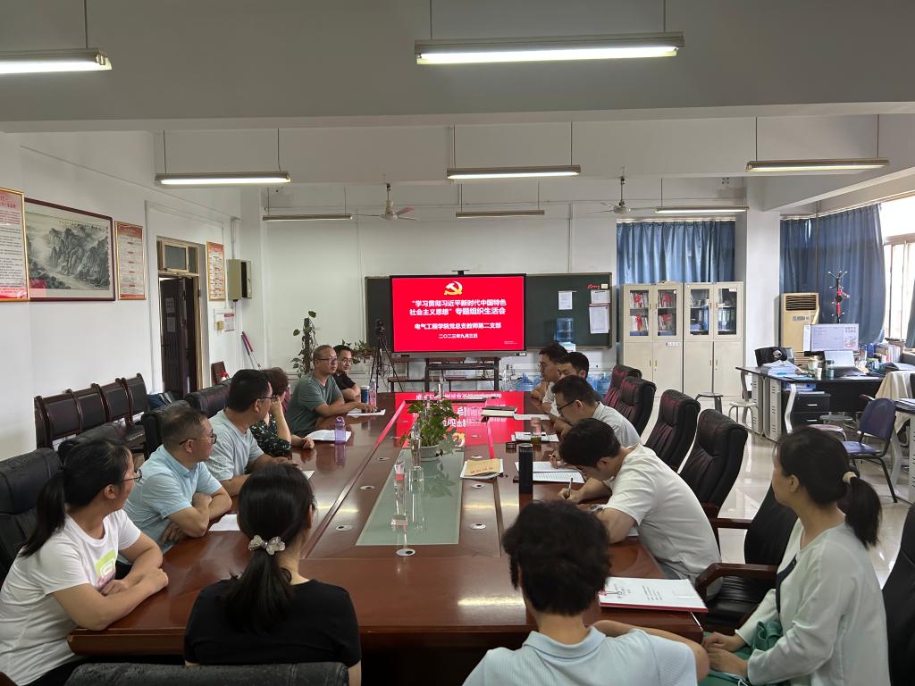 根据学校《关于“学习贯彻习近平新时代中国特色社会主义思想”专题组织生活会的通知》要求,9月4日下午,电气工程学院党总支教师第二党支部召开组织生活会,会议由第二党支部书记张维主持,电气学院党总支副书记夏东盛对会议进行督导。