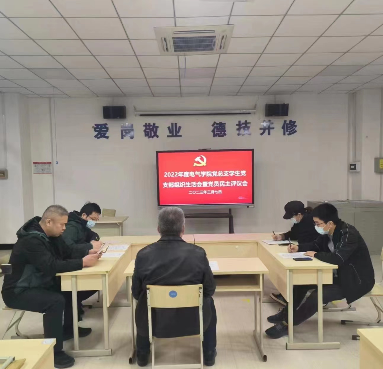 根据学校《关于召开2022年度组织生活会和开展民主评议党员工作的通知》要求,3月7日上午,电气工程学院党总支学生第一、第二党支部在行知楼A102教室召开2022年度组织生活会暨民主评议党员会议,会议由学生第二党支部书记赵松主持,电气学院党总支书记韩伟对会议进行督导。
