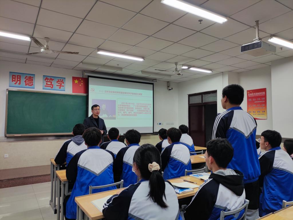 赵松同志以“学习百年党史,培育时代新人”为主题,从青年学子学习百年党史的重要意义、青年学子应该从党史中注重学什么、青年学子党史教育要注重“四个结合”等三个方面开展主题党课。同时,要求党员学生们认真学习党史,从党史学习教育中汲取前进的智慧和力量,以实际行动发挥党员学生的模范带头作用。