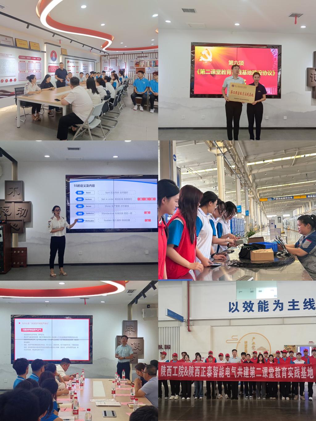 伴随着庄严的国歌声,活动正式开始。第二项由正泰智能电气有限公司人力资源部祁经理介绍企业的发展历程、生产园区以及往届毕业生就业现状。第三项,电气工程学院党总支书记刘其兵围绕学生支部党建情况进行简要说明。第四项,学生第二党支部书记赵松同志以《增强党性修养,做讲党性守党规严党纪的时代新人》为题讲述了一堂生动的党课。第五项,电气工程学院专任教师孟娇娇现场开展5S课程管理教学,向企业员工普及“整理、整顿、清扫、清洁、素养”在企业中的实践与应用。第六项,双方签订《第二课堂教育实践基地建设协议》并授牌。第七项,往届就职毕业生围绕电气类专业课程设置、人才培养方案修订、学生教育管理等畅谈个人工作体会,与学弟学妹分享工作经验。第八项,全体党员在学生第一支部宣传委员李小燕同志的带领下重温入党誓词,激励全体党员始终牢记党员身份,在各自的岗位上发光发热。第九项,企业负责人带领全体人员进行企业参观,帮助同学们近距离熟知职业岗位、工作职责,提升劳动技能、强化劳动观念。最后,双方合影留念,本次校企党建共建活动圆满结束。