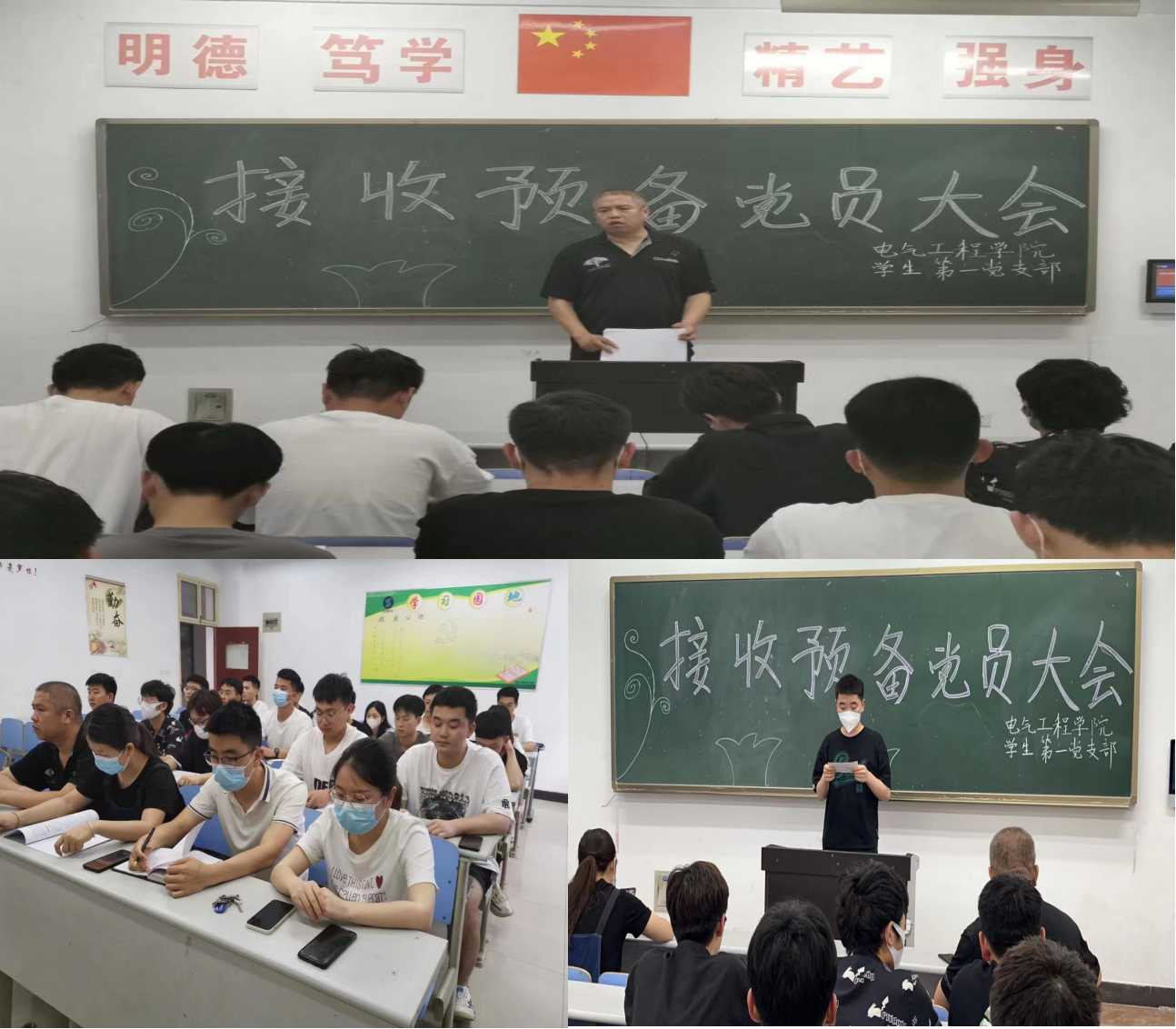 为深入加强学生党员学习教育管理,壮大基层党组织力量,2022年5月30日,电气工程学院党总支学生第一党支部于崇文南C106教室召开支部大会,讨论接收黄耿、袁易伟、魏智鹏、谭晨辉、石明鑫、尹俊、付昱彬、韩嘉康、梁艺安、黄宇星、李飞云、刘强、杨博博、马新成、侯艺晗、吴萌、胡靖靖、吕逸鑫、任崔祥、贾长乐、蔡佳乐、王沛力、南迪、王鹏24位同志为中共预备党员,会议由支部书记夏远贵同志主持。