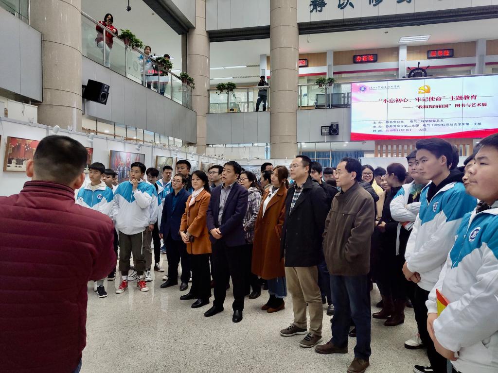 为了将“不忘初心、牢记使命”主题教育推向深入,大力弘扬以爱国主义为核心的伟大民族精神,充分宣传展示中华人民共和国成立70年来的光辉历程、伟大成就和宝贵经验,突出宣传展示党和国家事业取得的全方位、开创性历史成就。引导师生坚定“四个自信”,激发爱国之心,增强民族自豪感,营造积极向上的校园文化氛围。教务党总支与电气工程学院党总支联合举办“不忘初心、牢记使命”主题教育—“我和我的祖国”书画展,教务党总支第二党支部(图书馆支部)与电气工程学院党总支学生第一支部承办了本次活动。
