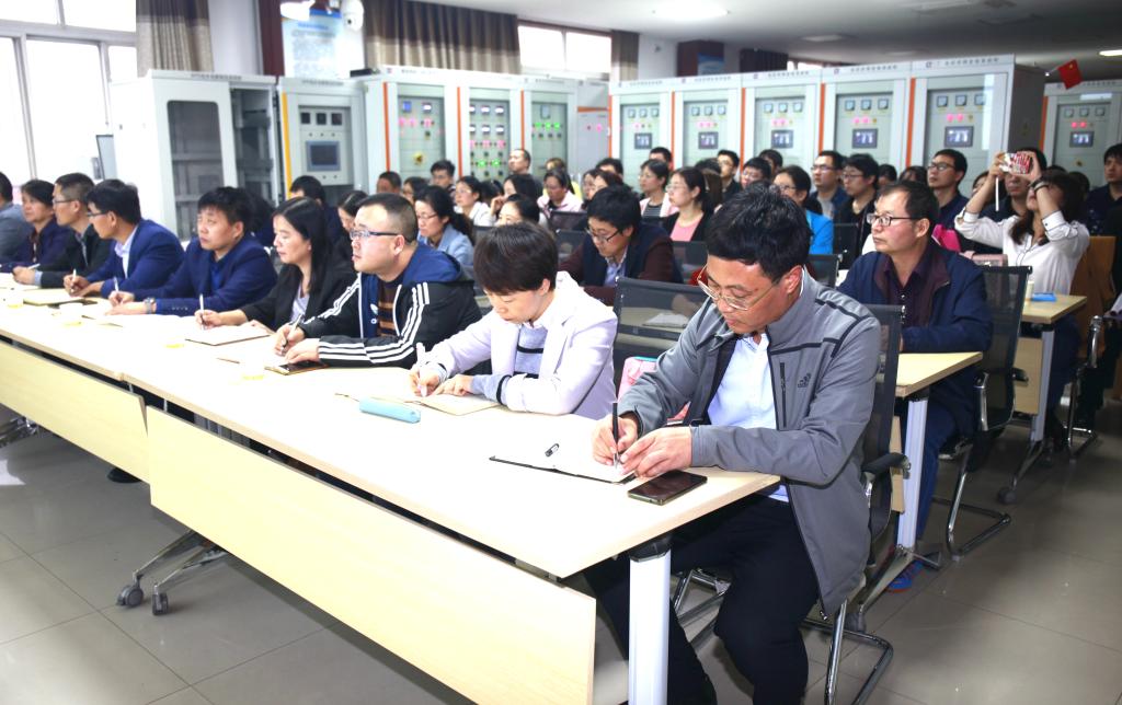 10月10日下午,结合“不忘初心、牢记使命”主题教育,党委副书记、副院长刘永亮在行知楼A电气工程学院光伏微电网实训室为电气工程学院党支部所有教师党员讲授题为《时代命题与高职教育的使命担当》专题党课,督导组安玲老师、党委组织部长王超联聆听了党课。党课由电气工程学院党总支书记杜云主持。