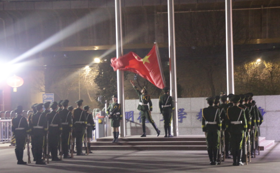 6点50分,升旗仪式正式开始。英姿飒爽的国旗护卫队迈着铿锵有力的步伐护送鲜艳的五星红旗入场,伴随着庄严的《中华人民共和国国歌》,五星红旗冉冉升起,全体师生肃立凝视,表达了对祖国无限热爱和崇高敬意。