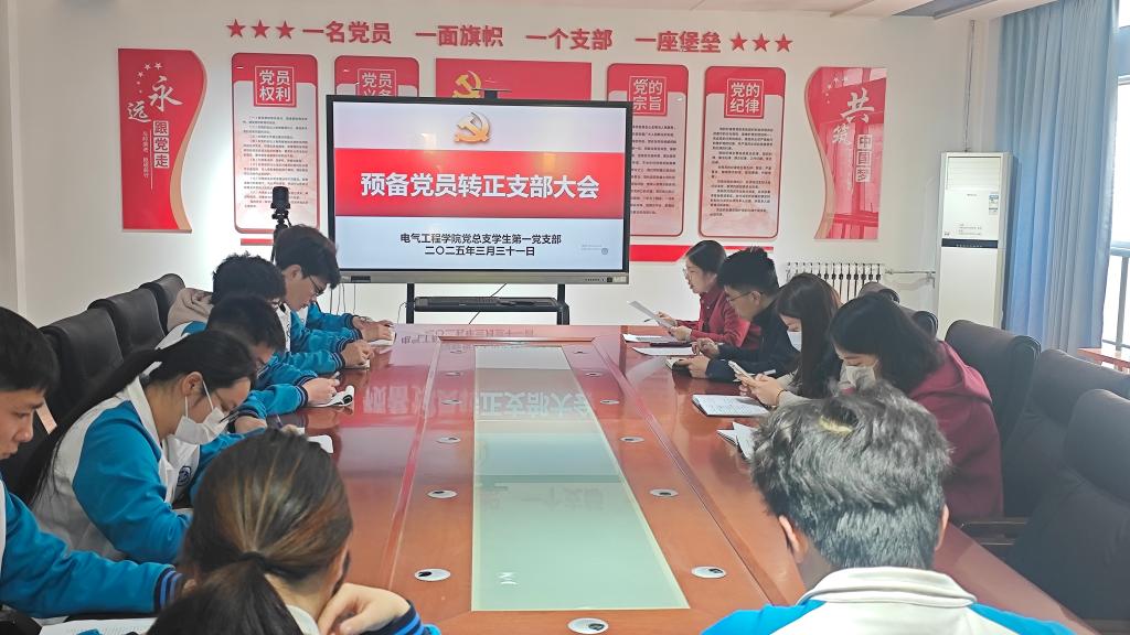 为进一步加强党员队伍建设,增强党组织生机活力,3月31日,电气学院学生第一党支部在行知楼A506党员活动室召开预备党员转正大会。会议由学生第一党支部书记李小燕主持。