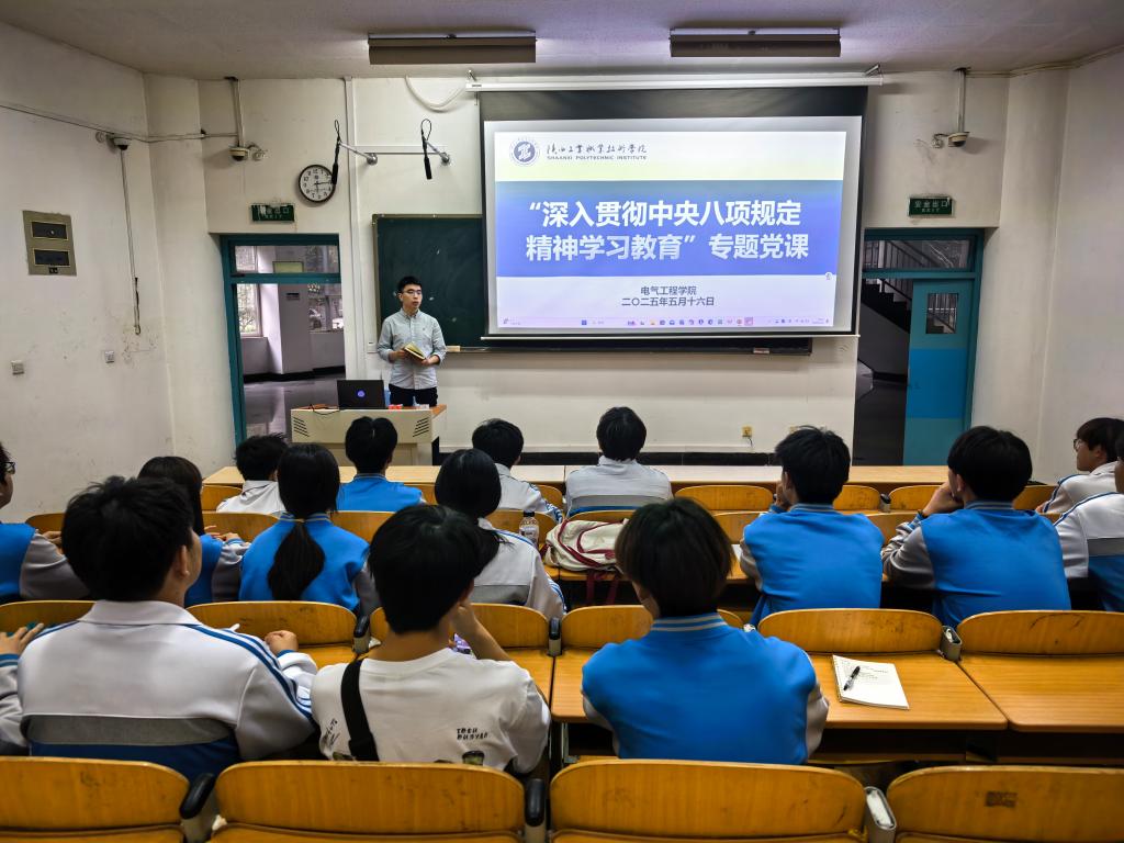 为深入贯彻落实全面从严治党要求,进一步增强学生党员的纪律意识和规矩意识,5月16日,电气学院学生第二党支部书记陈春山以《深入贯彻中央八项规定精神扎实推进全面从严治党向纵深发展》为题讲授专题党课,全体学生党员、入党积极分子100余人参加。