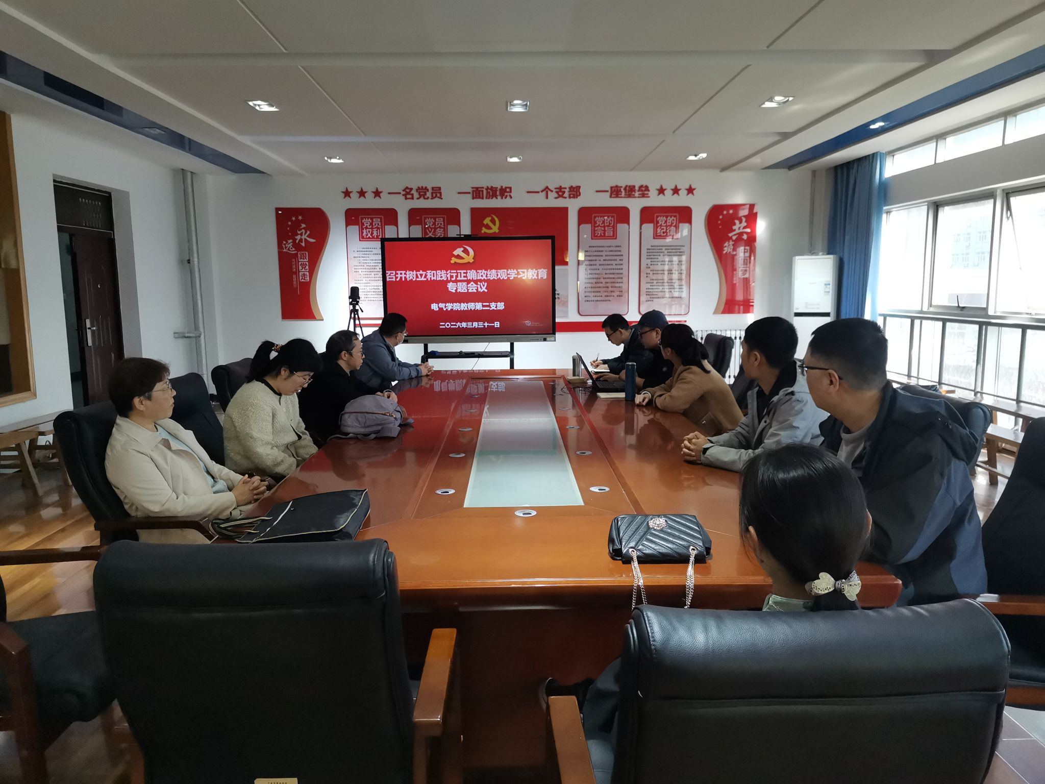 为深入学习领会习近平总书记近期重要讲话和重要论述精神,3月31日,电气工程学院教师第二党支部在学院会议室召开树立和践行正确政绩观学习教育专题会议,围绕立德树人根本任务开展思想交流与工作研讨,进一步筑牢信仰之基、把稳思想之舵。支部全体教师党员参会,会议由支部书记侯伟主持。