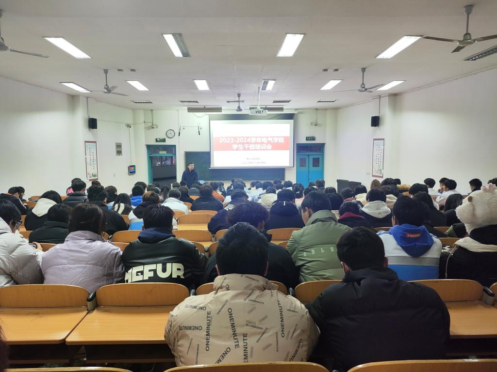 为进一步加强学生干部队伍管理,提高要求,严明纪律,积极构建良好的班风、学风,12月22日下午,电气工程学院组织22级、23级全体学生干部在崇文西楼102教室开展培训会议,会议由学工办主任赵松主持。
