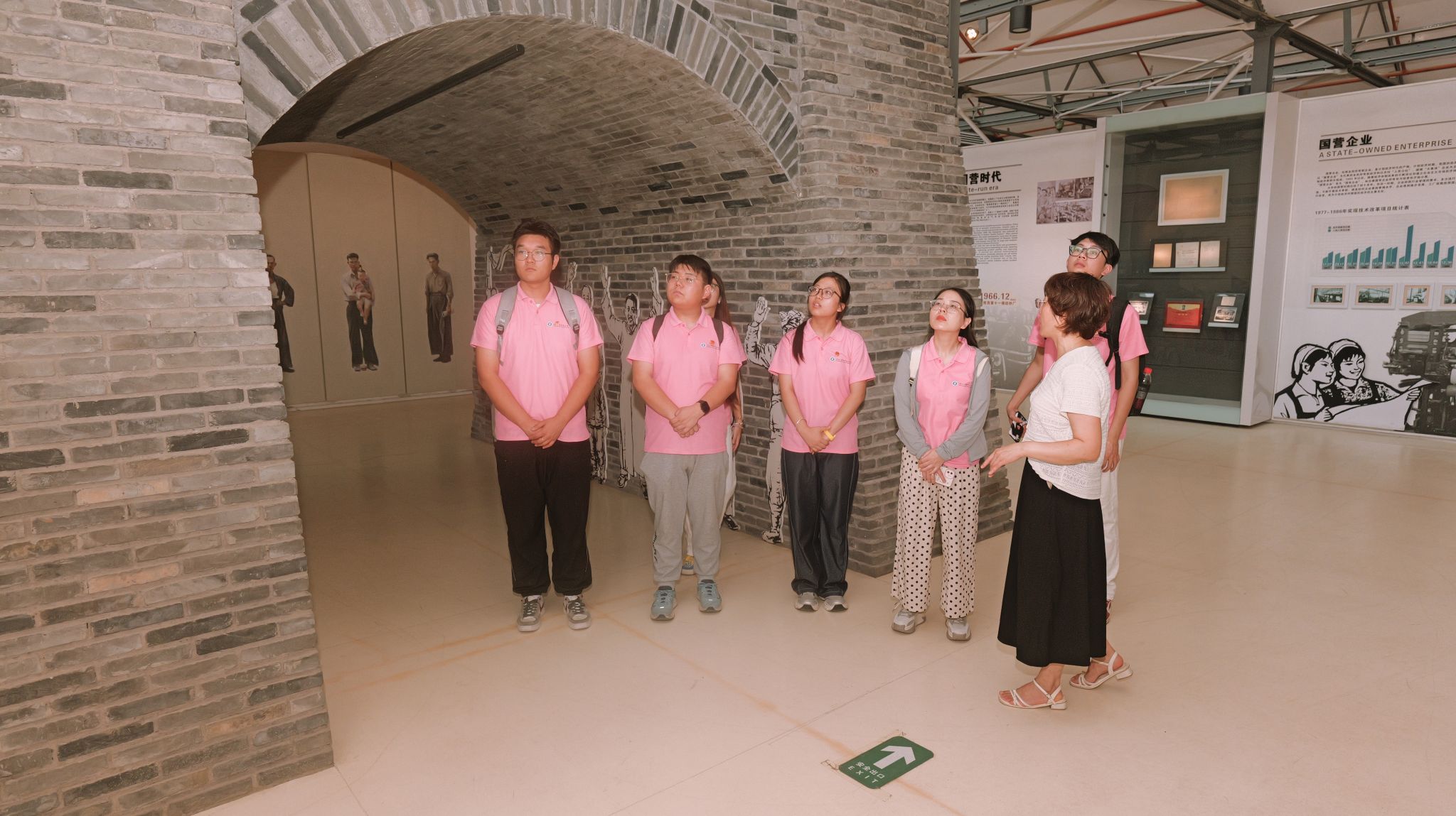 在讲解员的引导下,实践团成员循着时间线索,深入了解了大华1935的前世今生。其前身为1935年建成的大华纺织厂,作为民国时期西北地区重要的纺织工业基地,初创时便承载着“实业救国”的理想。讲解员介绍,建厂初期,面对设备短缺、技术落后的困境,老一辈创业者凭借坚韧意志,逐步奠定了西北纺织工业的基础;抗战时期,工厂克服轰炸威胁坚持生产,为前线提供军需物资,成为支援抗战的工业力量;新中国成立后,通过公私合营迈入快速发展阶段,生产规模与技术水平显著提升,一度成为区域纺织业的标杆,产品远销各地,见证了计划经济时期工业体系的建立与壮大。