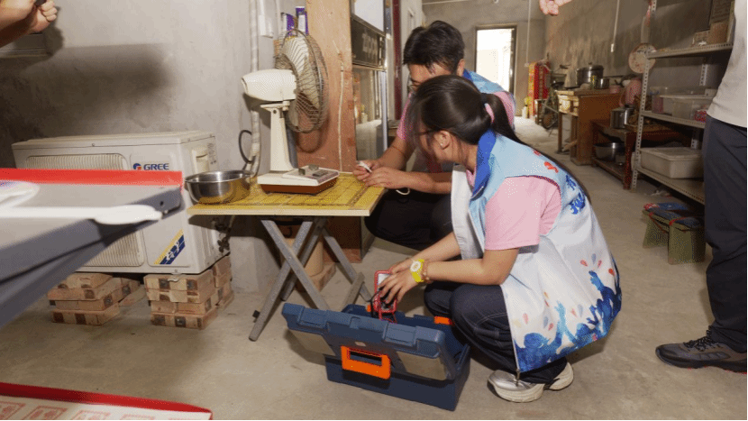 此外,实践团还向村民发放安全用电宣传单,提醒村民“夏天天气热,空调、冰箱一起开,插座可不能插得太满,容易跳闸甚至引发火灾。”有效提升村民安全用电意识,防范潜在用电风险。