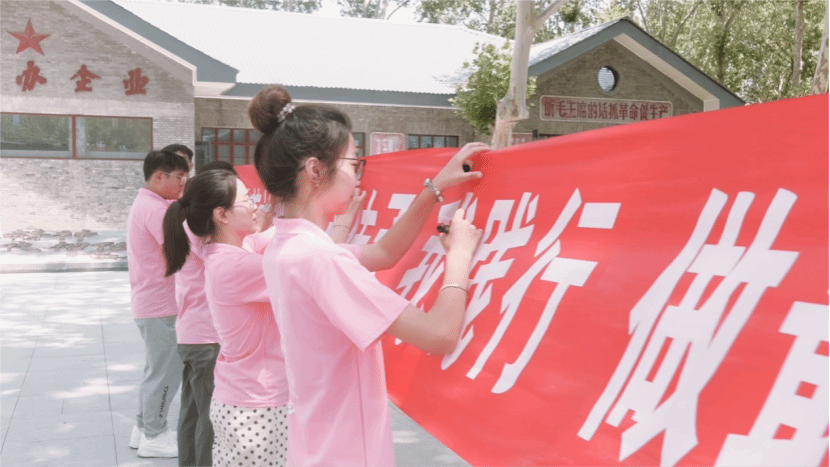 实践团成员在印有“梦桃精神似灯塔,我传承,我践行,做最美奋斗者!”的横幅上郑重签名。一笔一划,写下的是承诺,更是青春的责任与担当。