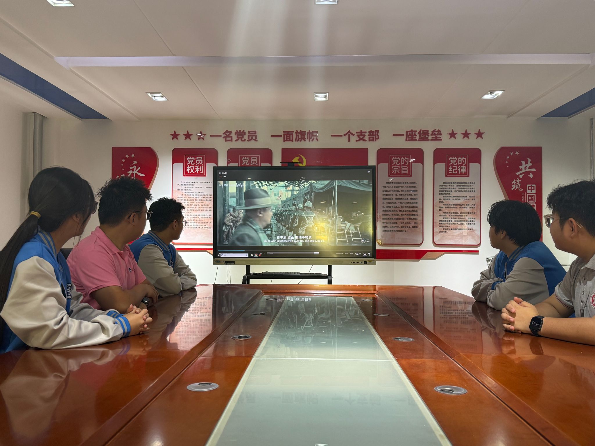 活动分两部分进行,同学们首先共同观看九三阅兵式的精彩片段,从整齐划一、气势磅礴的受阅方队,到展示我国工业科技实力的新式武器装备方阵,无一不让同学们心潮澎湃。观看结束后,研讨环节热烈展开。队长岳乐成激动地分享道:“看到那些先进的装备,我深刻意识到工业技术的强大支撑作用。作为工科类学生,我们要努力学习专业知识,为工业发展添砖加瓦。”随后,大家观看抗战电影《淞沪会战》,多个战斗场景的细致描绘和众多鲜活人物的刻画,全方位展现了中国军民在这场战役中顽强抵抗、浴血奋战的英勇形象。影片中,无论是战场上奋勇杀敌的将士,还是后方默默支持抗战的普通民众,充分彰显革命战士不屈不挠的民族精神和爱国情怀。队员吴永樊分享:“以前只是在书本上了解淞沪会战,今天通过电影,那些历史事件仿佛就在眼前,我才真正体会到抗战的艰难和先辈们的伟大。我们一定要珍惜现在的和平生活,努力学习,将来为国家做贡献。”