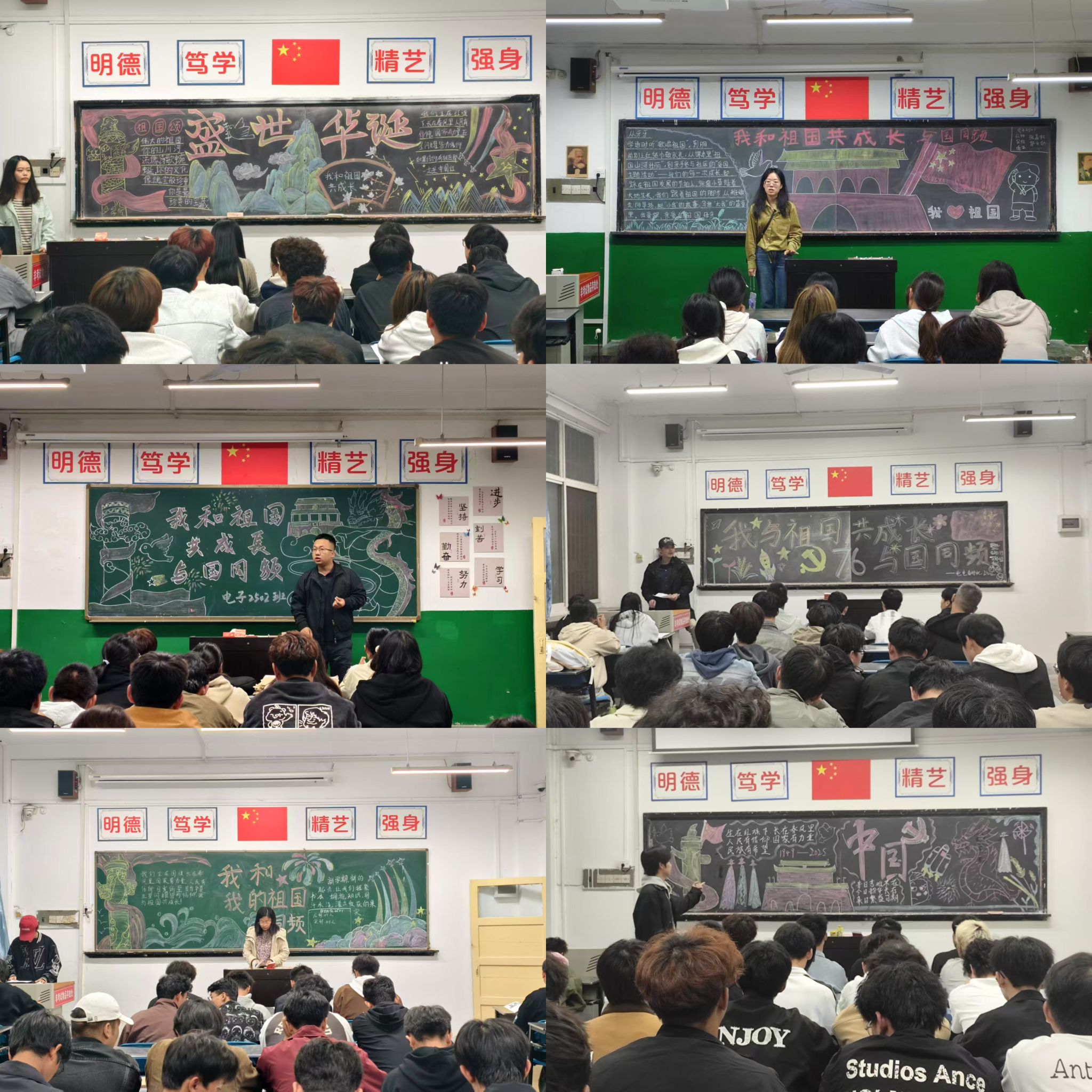 为深入学习贯彻习近平总书记在纪念中国人民抗日战争暨世界反法西斯战争胜利80周年大会上的重要讲话精神,深化爱国主义教育,同时筑牢学生假期安全防线,根据学校党委宣传部《关于开展 2025 年“我和祖国共成长”主题活动的通知》要求,9月27日晚,电气学院组织24级、25级全体学生在各班晚自习教室集中召开“我和祖国共成长”主题班会。