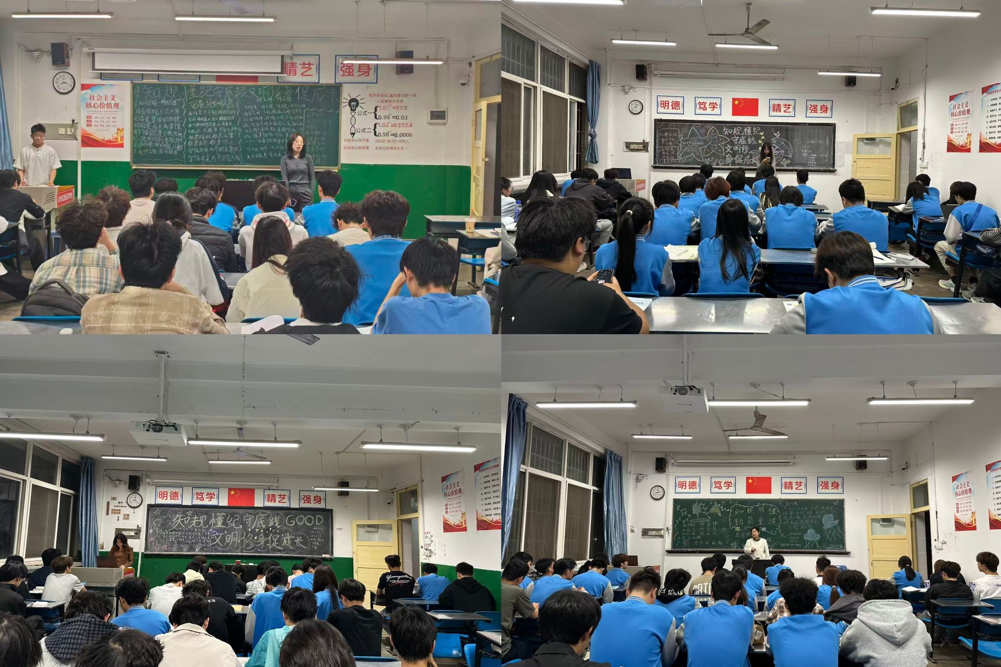 为强化学生纪律规矩意识,培育文明修身风尚,筑牢校园安全防线,4月19日晚,电气工程学院组织全体在校生在各班晚自习教室内有序开展“知规懂纪守底线,文明修身促成长”主题班会。