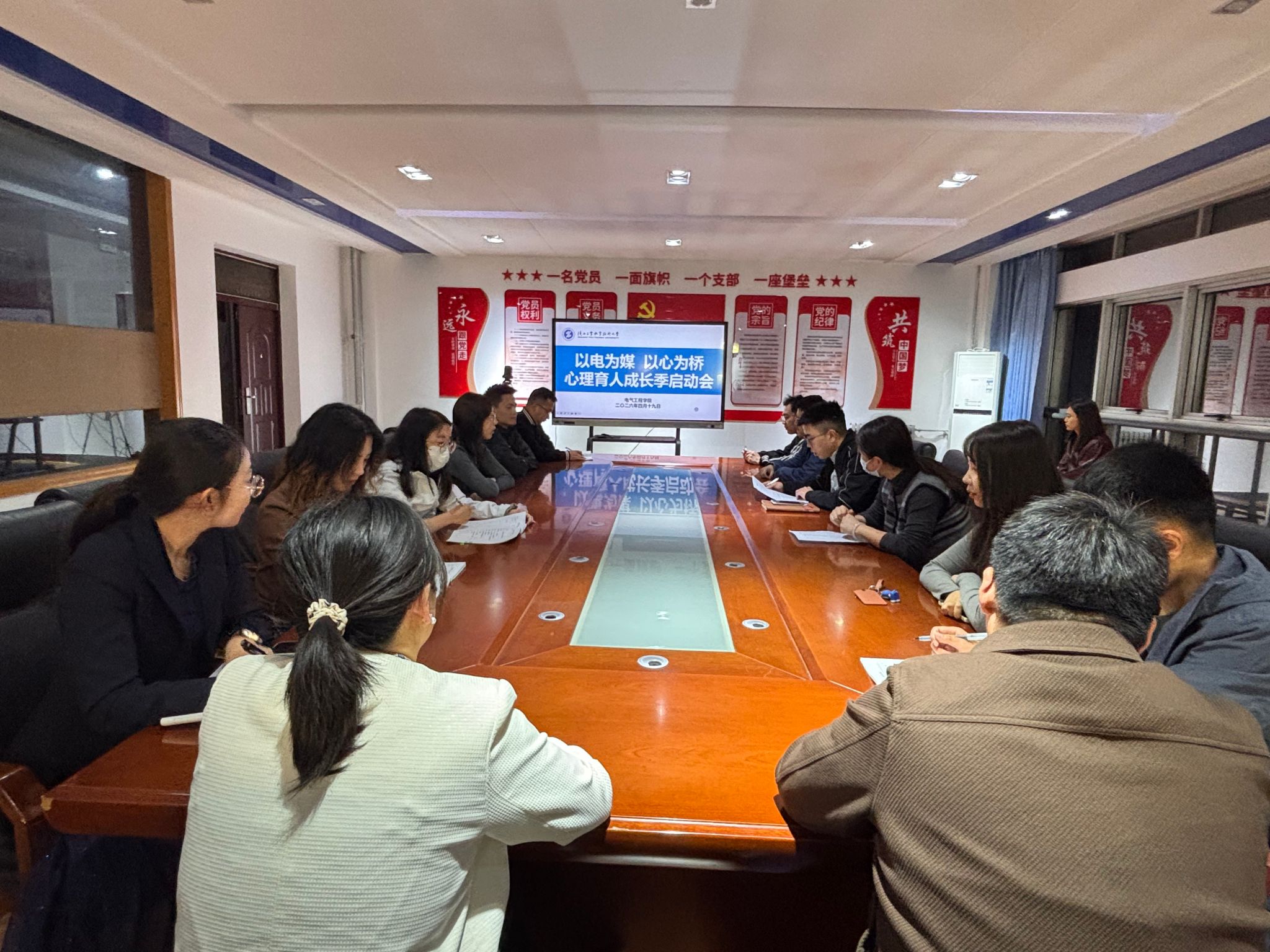 为深入推进心理育人工作走深走实,筑牢学生心理健康成长防线,推动电气专业特色与心理健康教育深度融合,2026年4月19日晚,电气工程学院举办“以‘电’为媒 以心为桥”心理育人成长季启动会。学院全体辅导员、班主任及学生代表参会,会议凝聚全员育人合力,明确成长季核心目标,正式拉开学院系列特色心理育人活动的序幕。