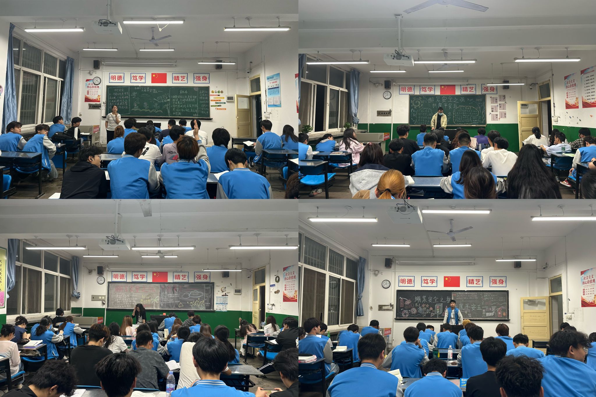班会期间,各班主任老师结合当下校园安全形势与节假日安全特点,多角度开展安全科普教育。重点围绕消防安全、宿舍用电安全、交通安全、防诈骗、出行游玩安全、人身财产安全等核心内容展开讲解。同时针对大学生常见的网络刷单诈骗、校外兼职陷阱、假期聚餐安全、私自外出离校等风险问题进行细致科普,结合真实校园安全案例,剖析安全隐患带来的危害,让同学们直观认识到假期安全防护的重要性。此外,各班着重强调了假期校纪校规,要求学生严格遵守学校请假报备制度,杜绝晚归、夜不归宿、私自离校等违规行为,倡导学生文明出行、理性消费,远离危险场所。最后,同学们结合实际积极分享自身安全认知,交流避险自救小技巧,主动反思日常学习生活中存在的安全疏漏,进一步夯实安全认知。